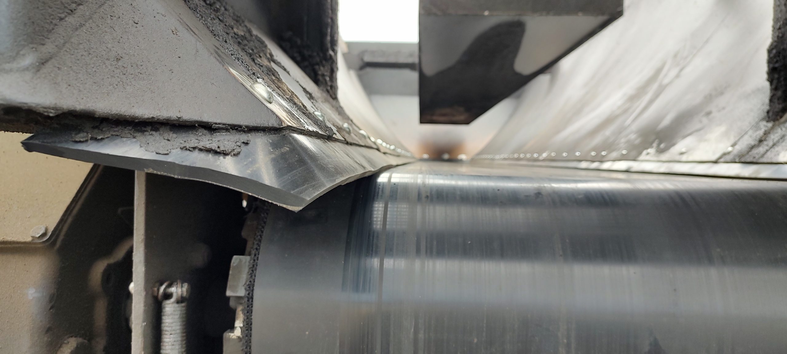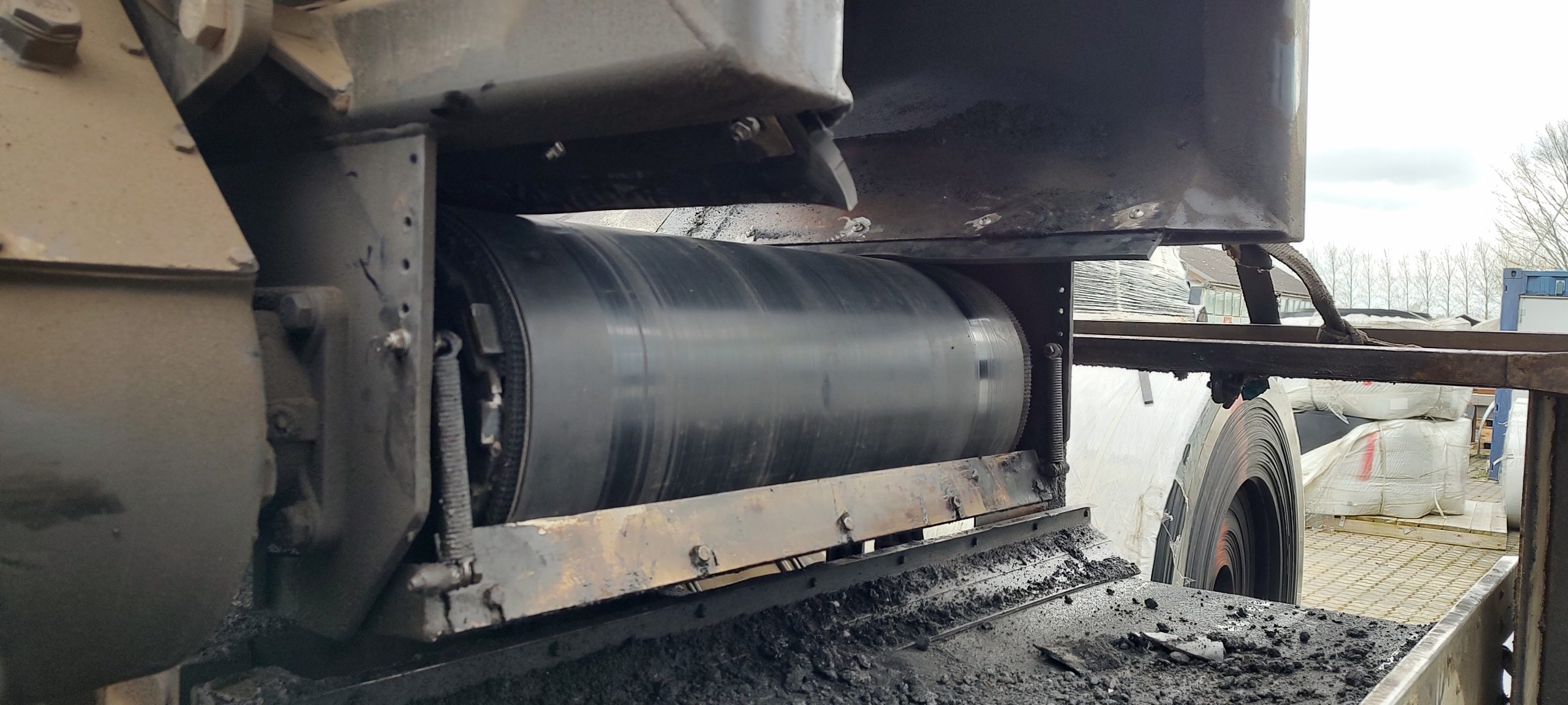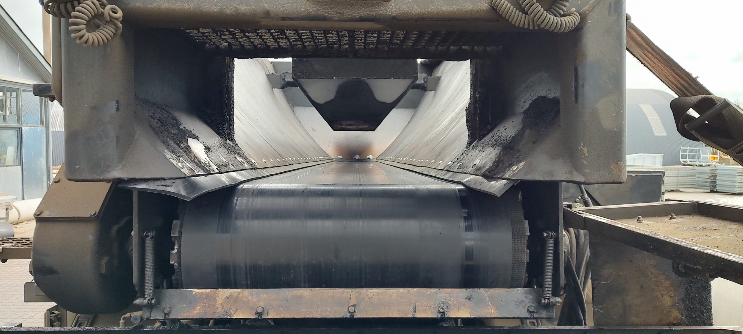 Vi monterede et nyt Continental fuld oliebestandigt gummibånd med en båndbredde på 800 mm. Båndet er særligt udviklet til at modstå høje temperaturer og aggressive materialer som asfalt. Det sikrer længere levetid og færre driftsstop.