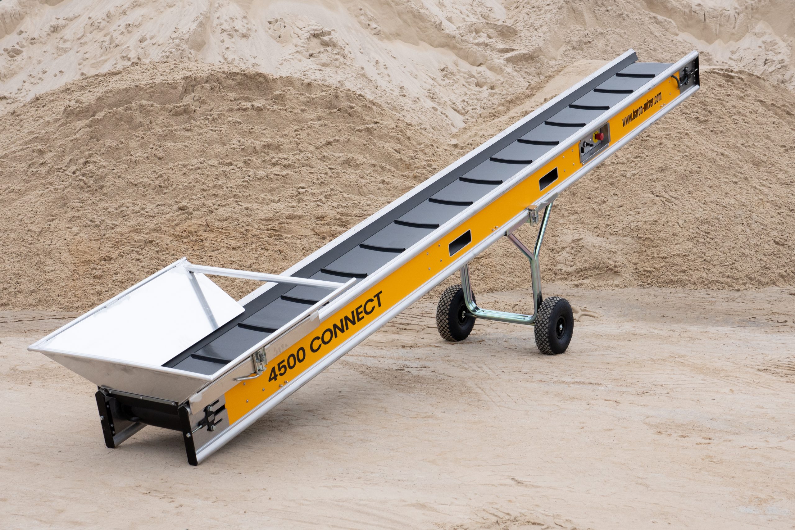 Fleksibelt transportbånd med CONNECT-teknologi, der gør det muligt at sammenkoble flere transportbånd og styre dem samlet fra én masterenhed. Ideelt til effektiv transport af jord, sand og beton over længere strækninger.
