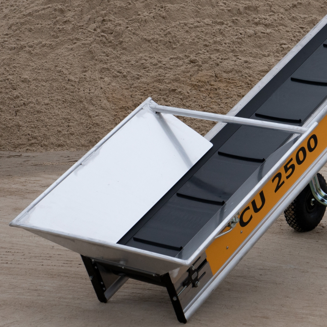 Fødekassen monteres direkte på transportbåndets indløb og forbedrer materialeflowet ved læsning. Den gør det muligt at udnytte transportbåndets kapacitet optimalt og skaber en mere effektiv arbejdsproces på byggepladsen.