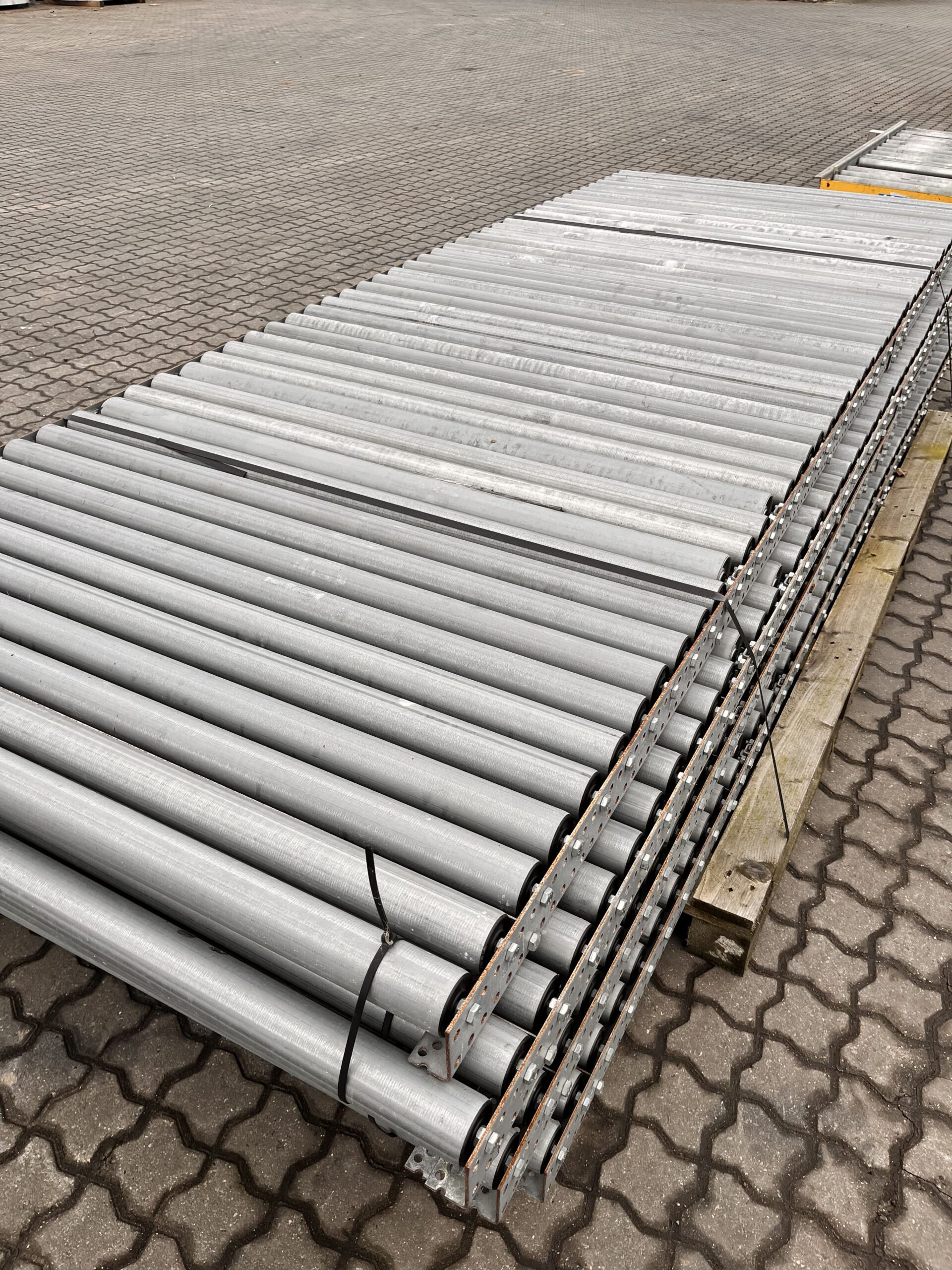 Hver rullebane indeholder 46 stk Ø60 stålruller og 2 stk bremseruller.