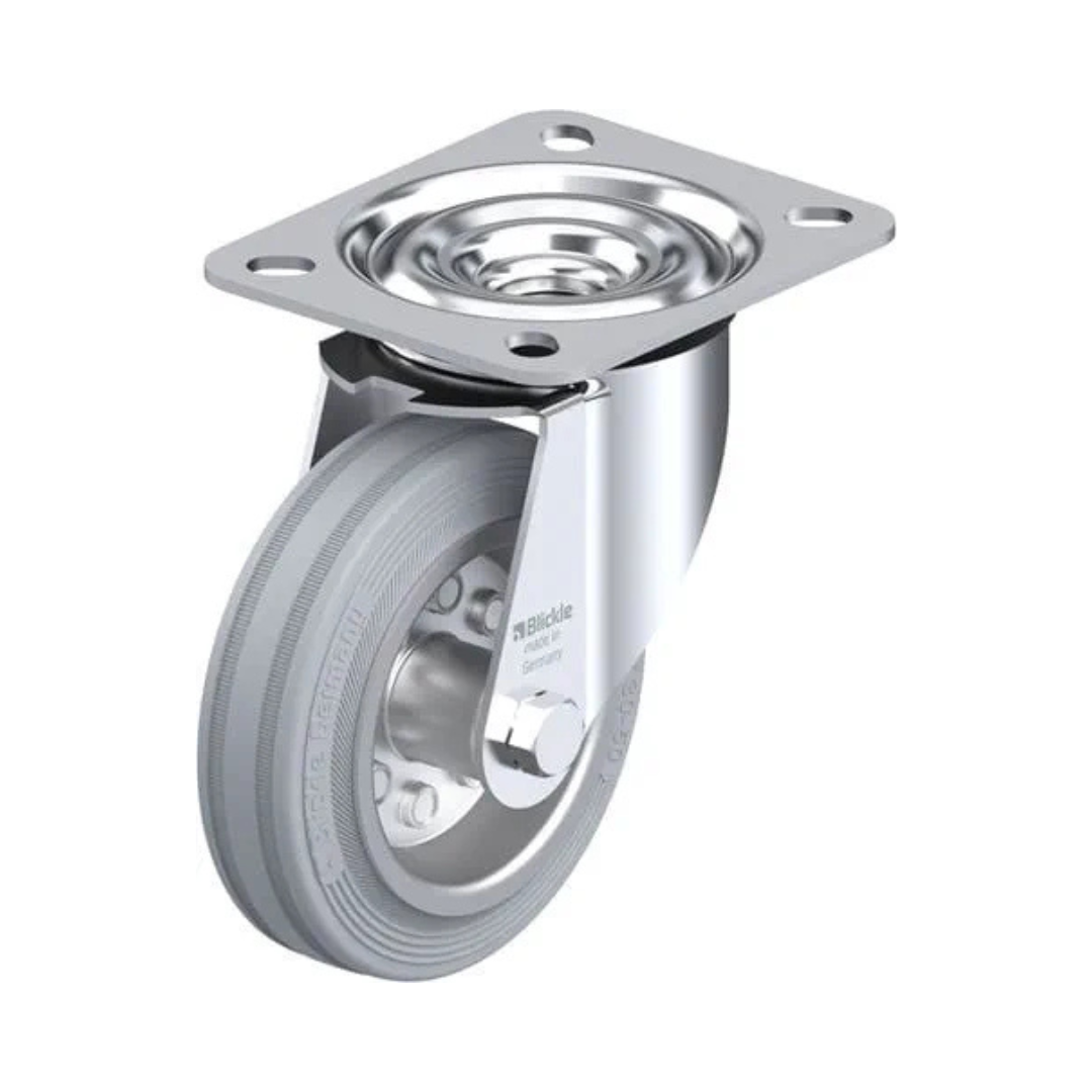 Dette drejehjul er velegnet til transportvogne, rulleborde og internt transportudstyr, hvor der er behov for fleksibel manøvrering og skånsom kørsel. Den grå massive gummibane er afsmitningsfri og sikrer støjsvag drift samt effektiv vibrationsdæmpning, hvilket gør hjulet ideelt til miljøer med krav om rene gulve.