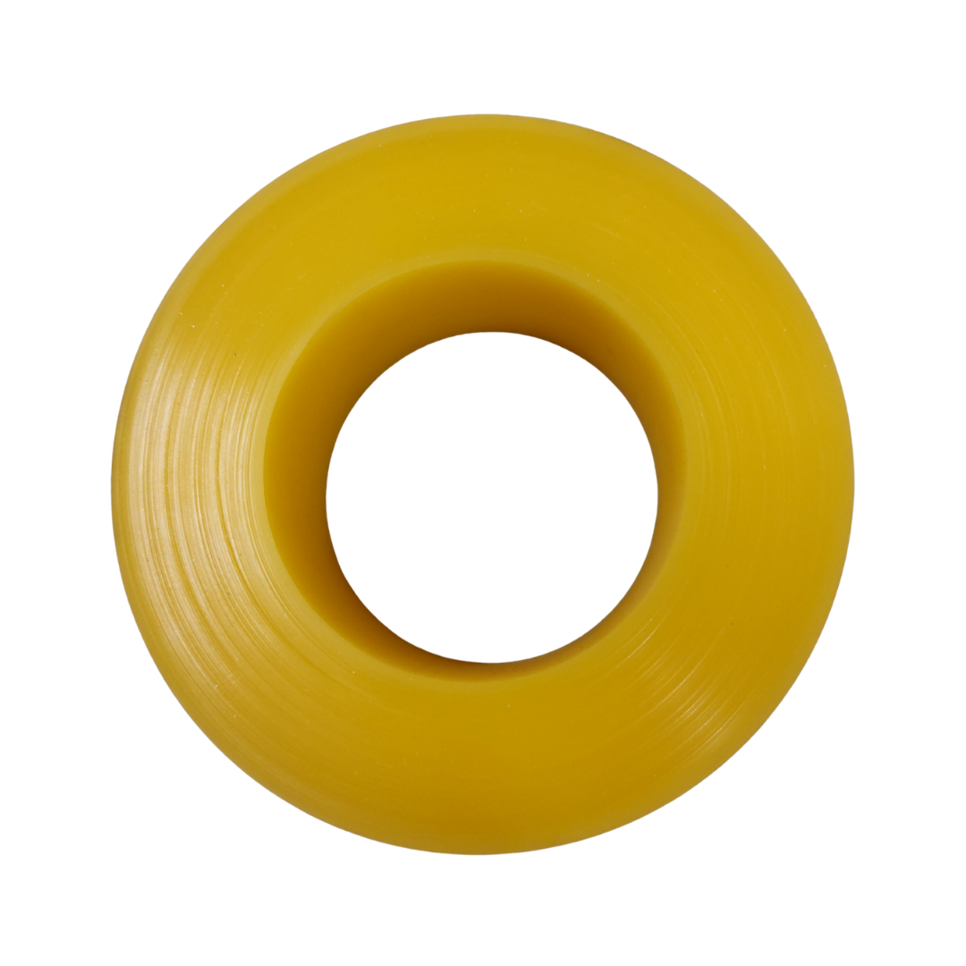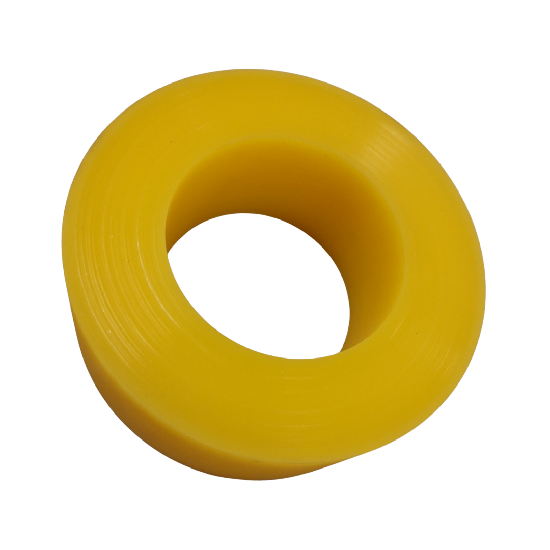 Slidstærk fladring i polyurethan (PU), velegnet som afstands- eller slidkomponent i transportanlæg og sorteringsudstyr. Den robuste konstruktion giver høj modstandsdygtighed mod slag og slitage, samtidig med at materialet bevarer en vis fleksibilitet.