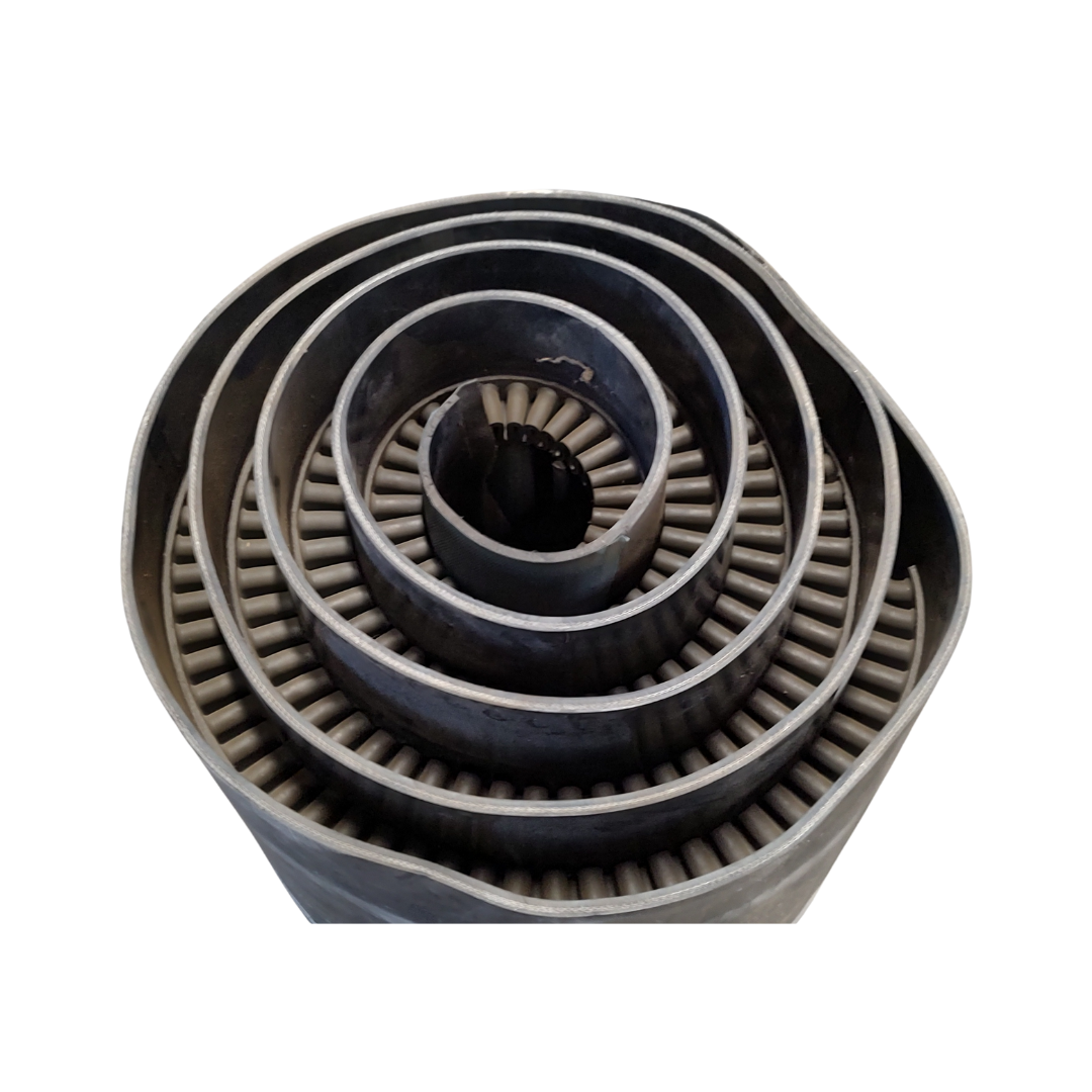 Dette bølgekantbånd er en outlet-/lagerudsalgsvare, og der findes kun 1 stk. til salg. Båndet har en samlet længde på 10.000 mm og leveres åbent, klar til varmvulkanisering eller samling på stedet. Det er opbygget i TC25/2-kvalitet (3+1), som giver et fleksibelt og driftsstabilt bånd til skrå og lodret transport. Båndet er udstyret med en 2-delt T50 bølgekantopsætning, der sikrer effektiv sidelukning under drift.