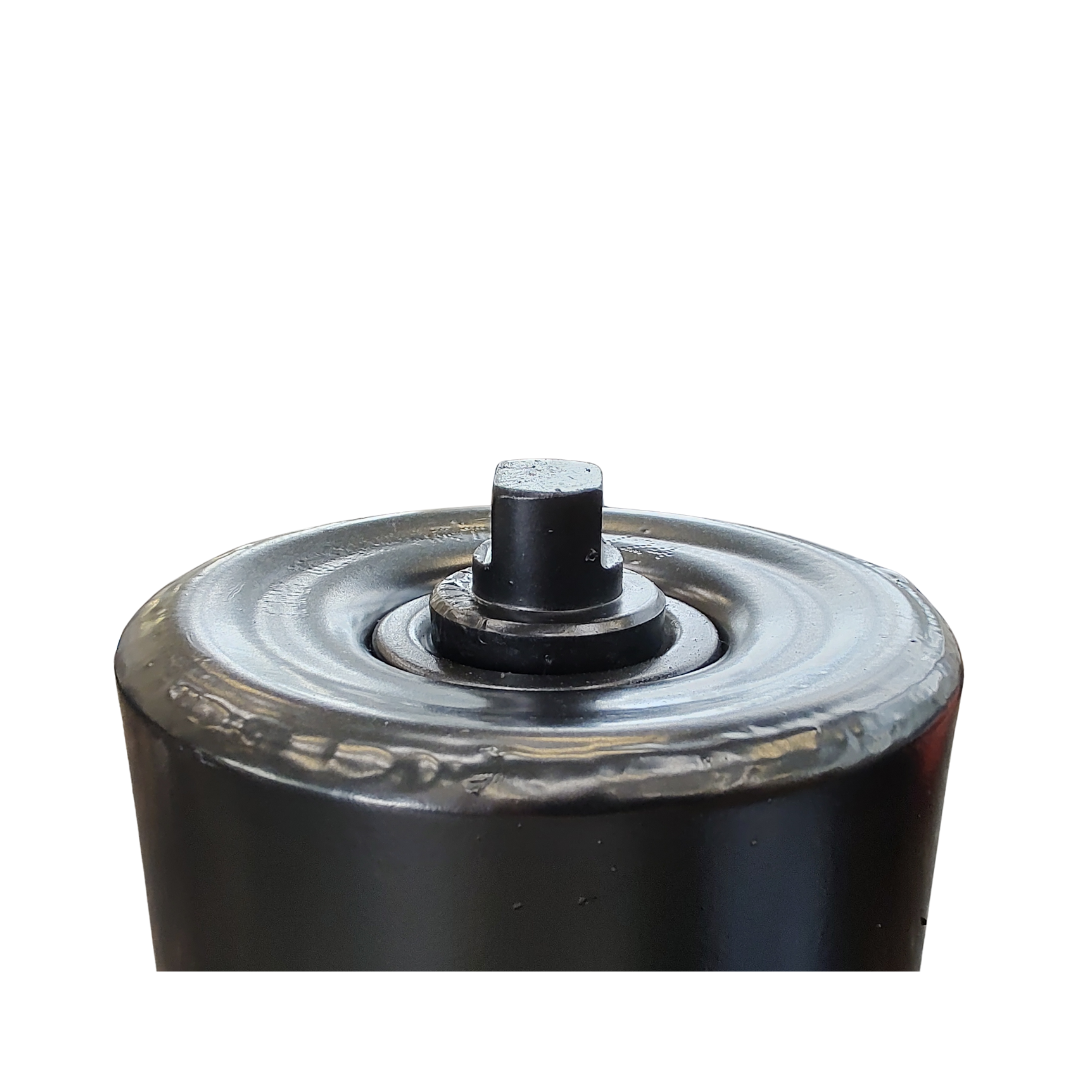 Robust centerrulle, specielt udviklet til sidebåndet på Powerscreen Warrior 2200 sorteringsanlæg. Rullen er konstrueret i slidstærkt stål og giver stabil og driftssikker båndføring under krævende forhold.