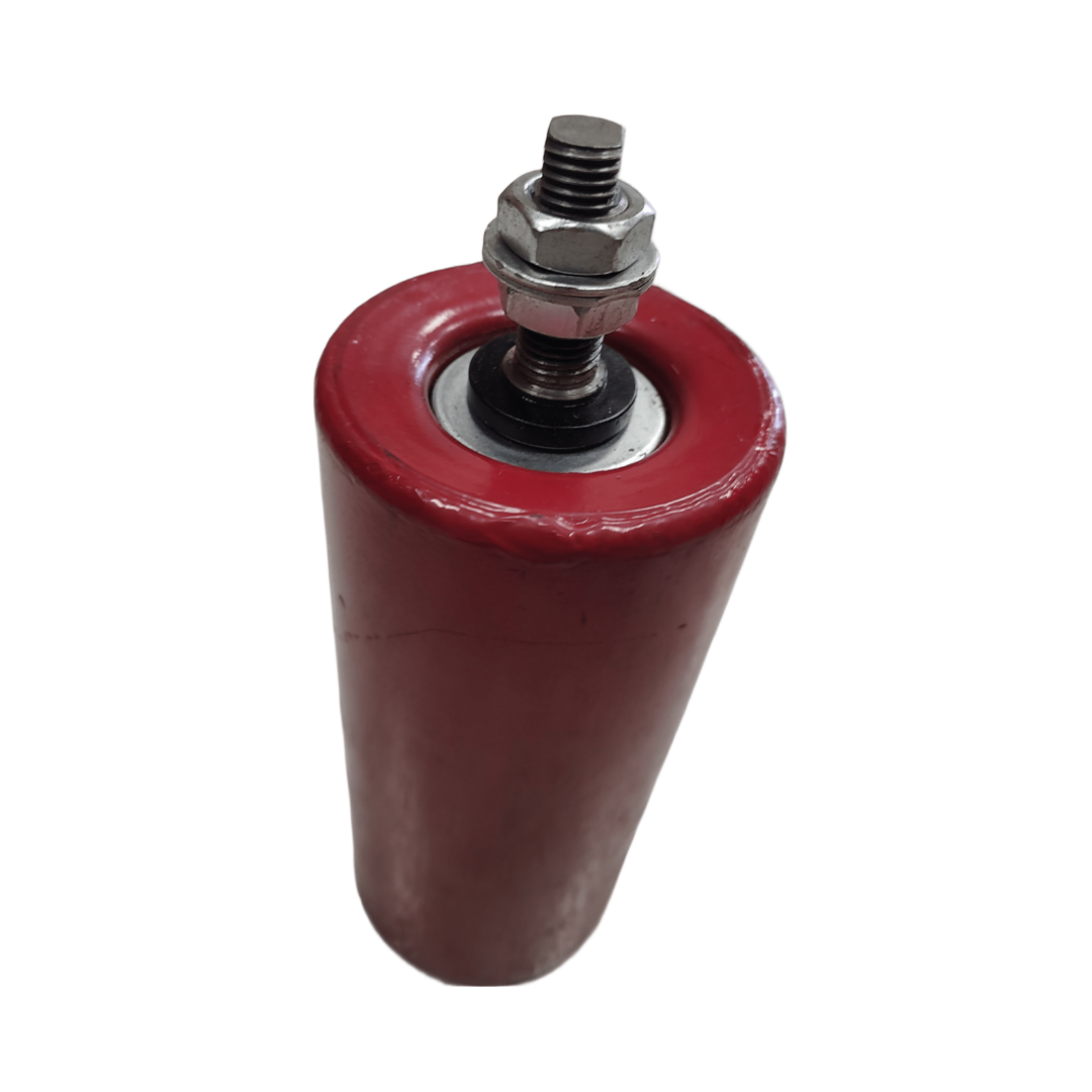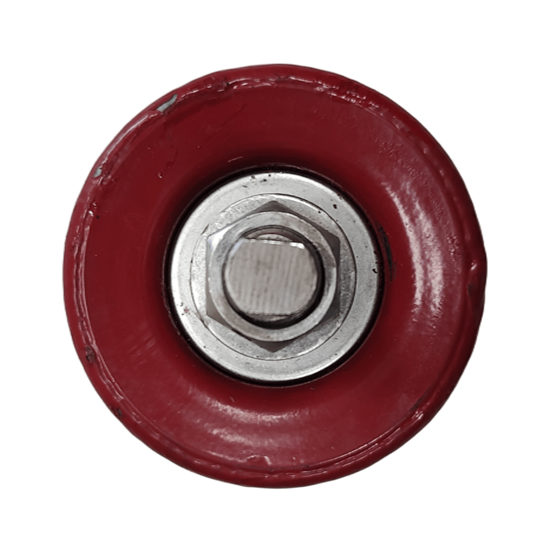 Robust styrerulle til præcis styring og føring af transportbånd og andet bevægeligt udstyr. Udført med to nøgleflader i gevindet for sikker fastgørelse og forbedret momentoverførsel i krævende industrielle miljøer.