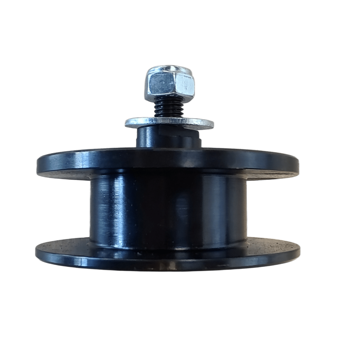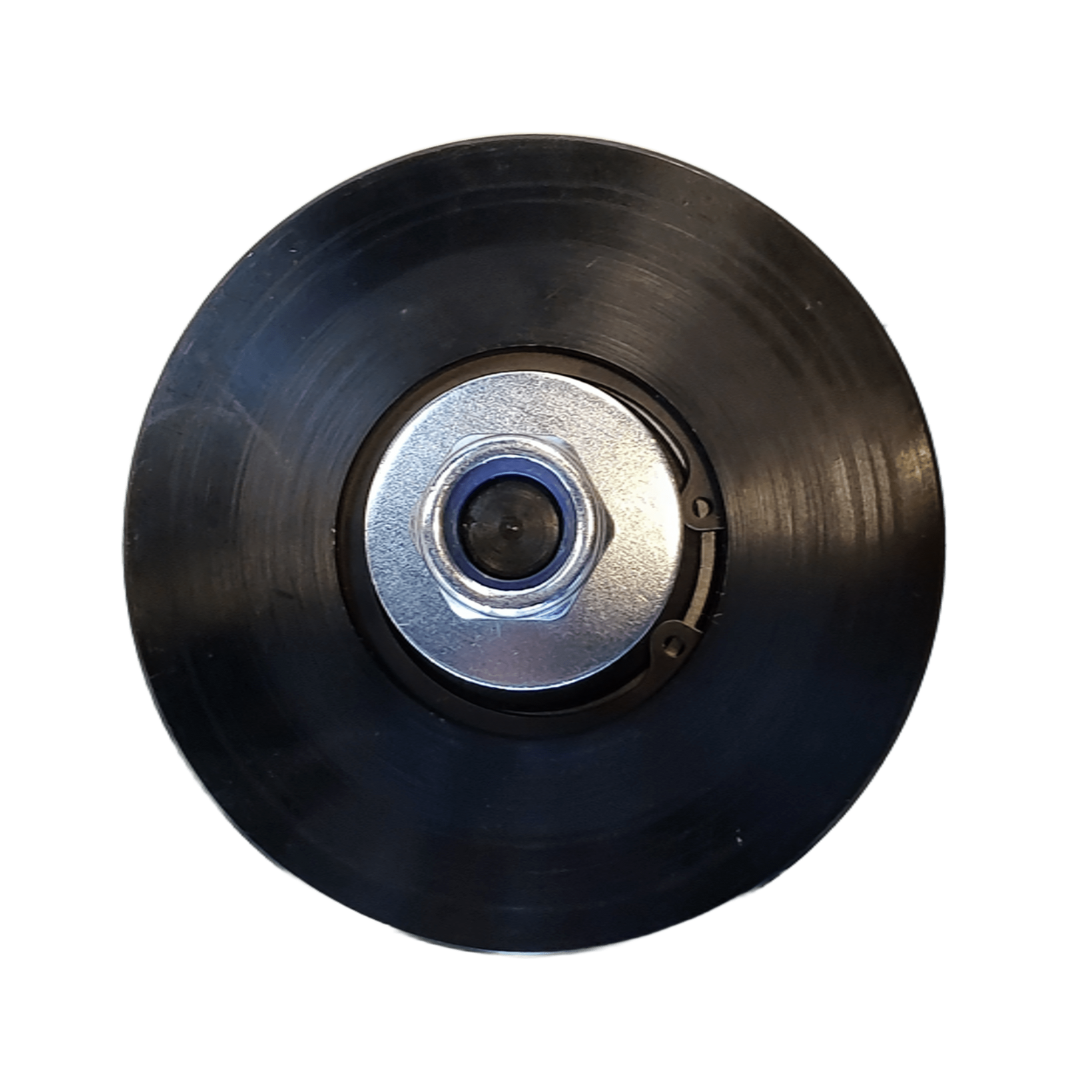 Komplet talerken styrerulle med 100 mm diameter, udviklet til Doppstadts sorterings-, knuser- og neddelereanlæg. Rullen er afgørende for korrekt føring og rotation af talerkenerne i maskinen og bidrager til en stabil og effektiv drift under krævende forhold.